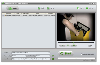 Utilizar Aneesoft Free AVI Video Converter es muy fácil. Basta con añadir el archivo a la lista y hacer clic en Start.